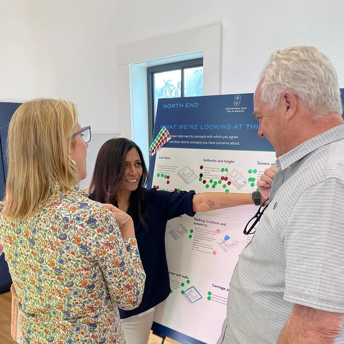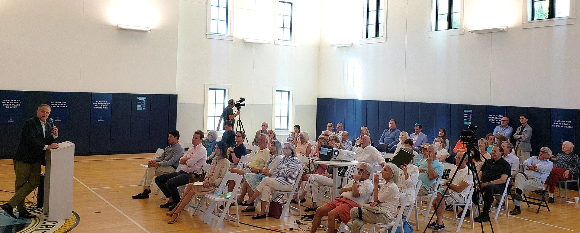 “This second day of Design Our Palm Beach Week was buzzing with activity! Approximately 85 residents visited the charrette today to view the engagement boards, collect literature, meet with the consultants, and attend the first of two charrette presentations.”