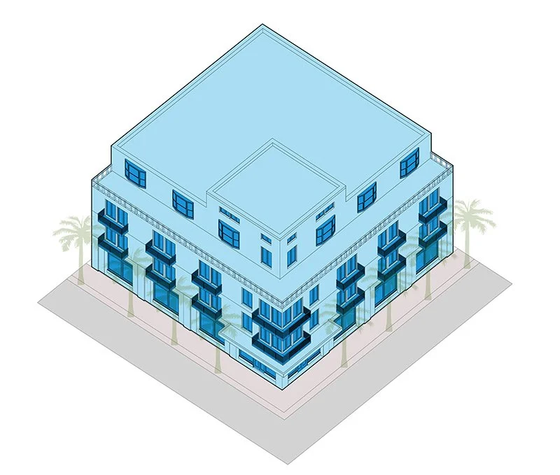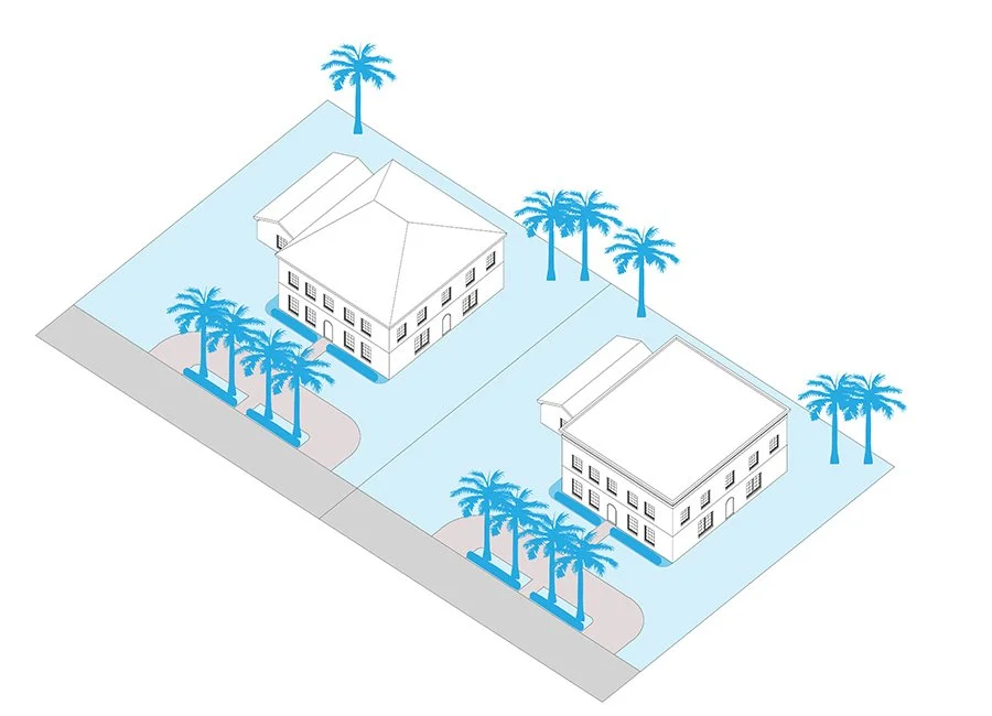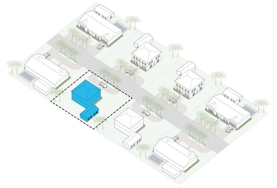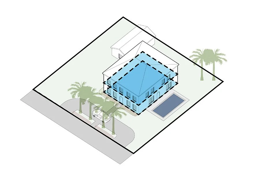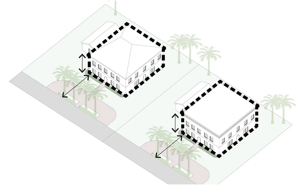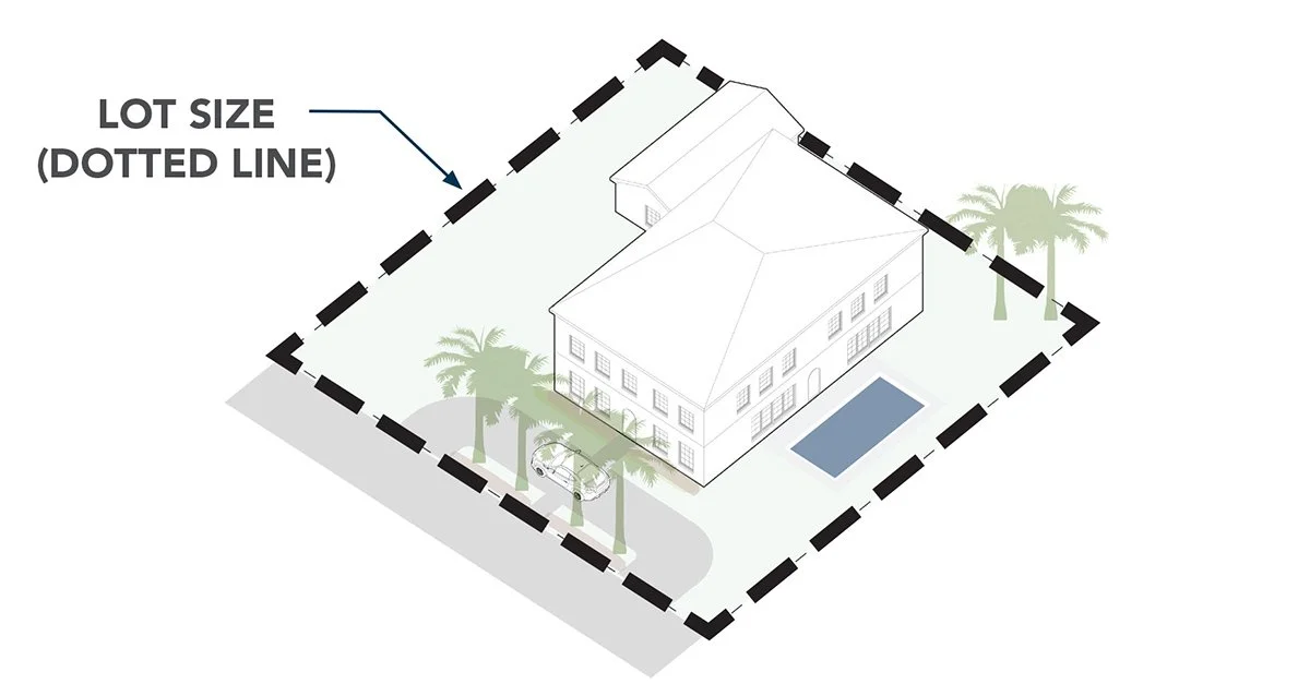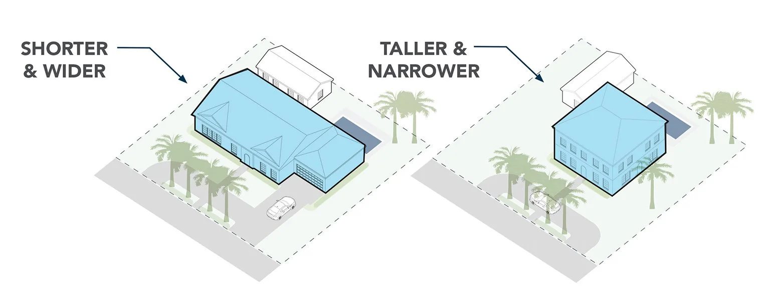 The way a building’s square footage is distributed on a lot. For example, is the building tall and skinny or short and wide?