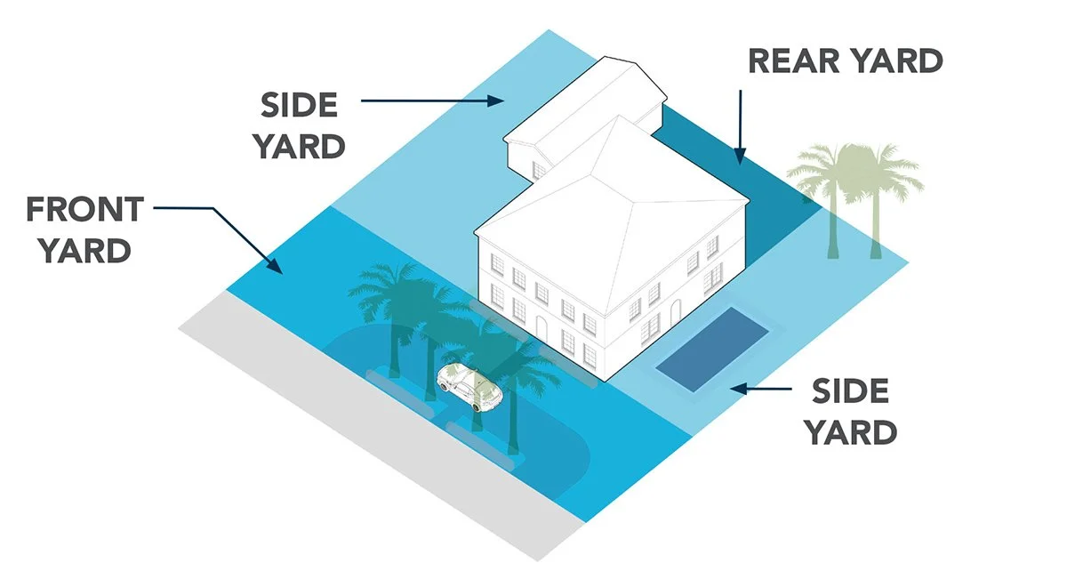 A property’s open space, i.e. the grounds immediately surrounding a building or, in the case of a courtyard, within a building.