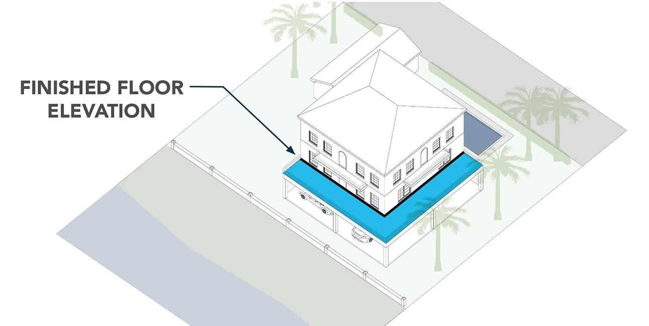 The minimum height above sea level the firstfloor must be. This is important in areas that experience flooding or sea level rise.